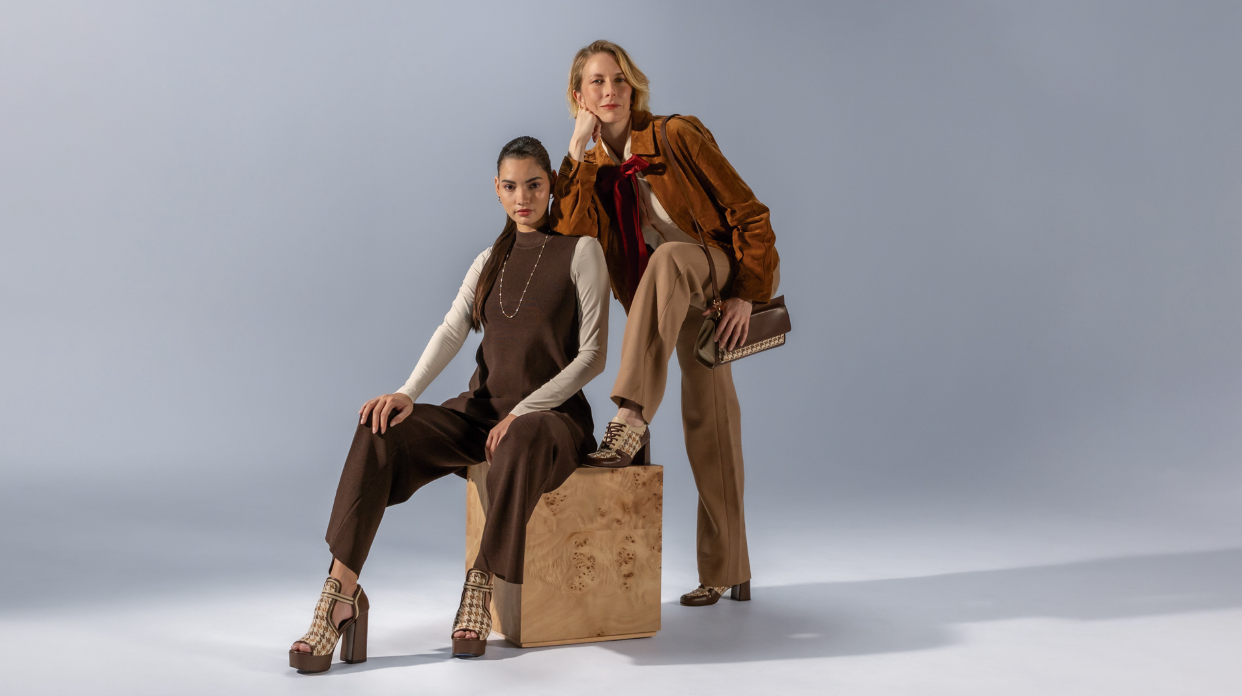 Zapato oxford color café textil para mujer con combinación de materiales