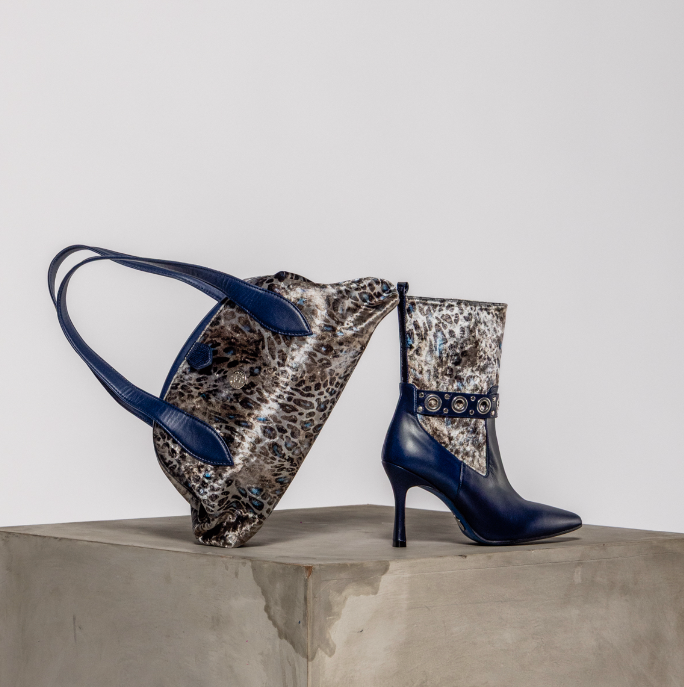 Botines gris textil de mujer combinación de materiales